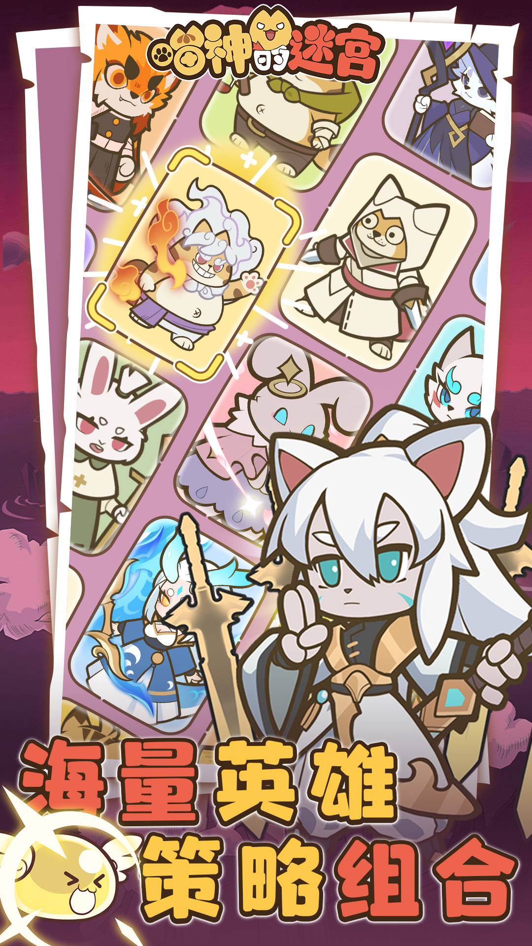 喵神的迷宫是一款以猫咪动物题材为核心的塔防游戏,采用竖屏操作方式,提供多英雄塔防战斗、卡牌养成、塔主城建设和宠物打工等玩法,让玩家在游戏中体验到策略、养成和收集的乐趣